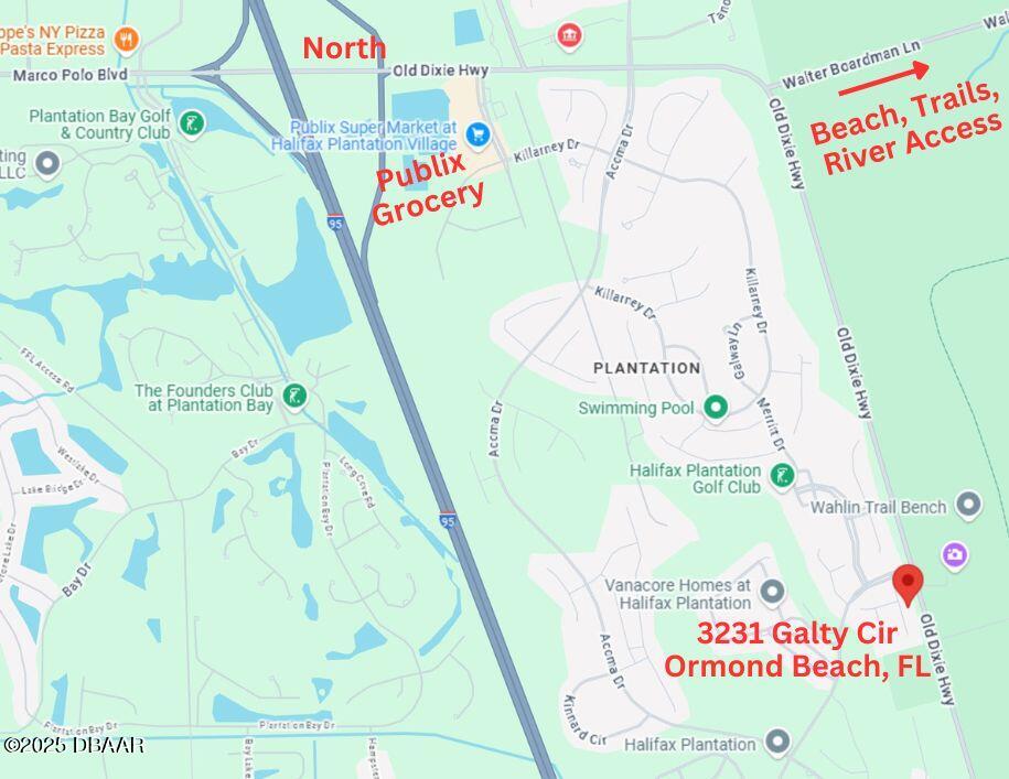 From I-95 and Old Dixie Hwy head east/south on Old Dixie; use 2nd entrance for Halfiax Plantation on west side of Old Dixie Monaghan Dr; make immediate left/south on to Galty Circle.
